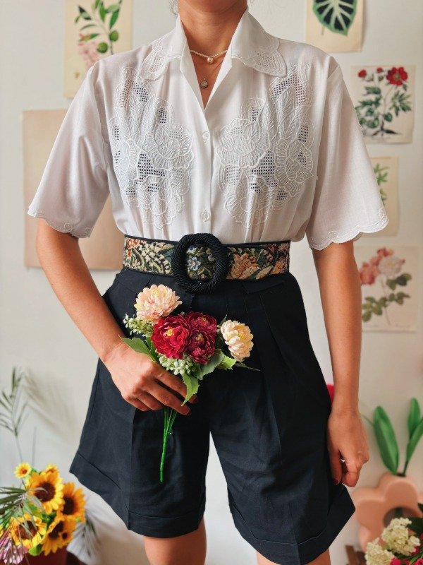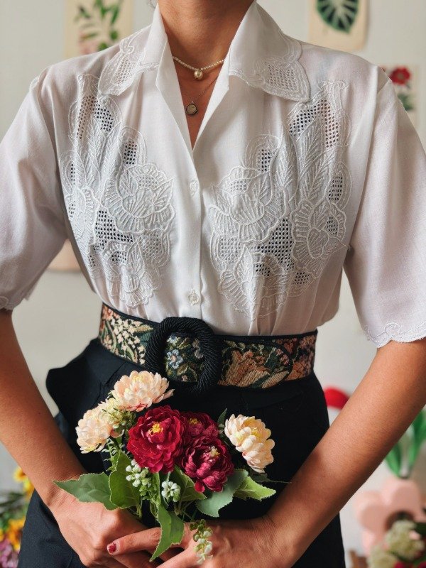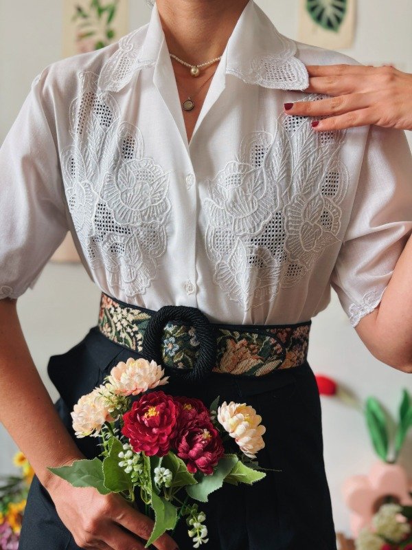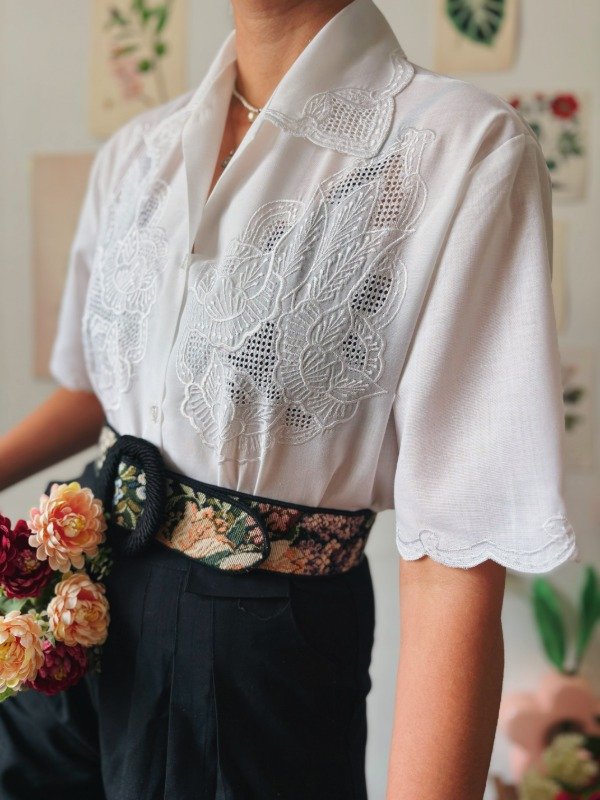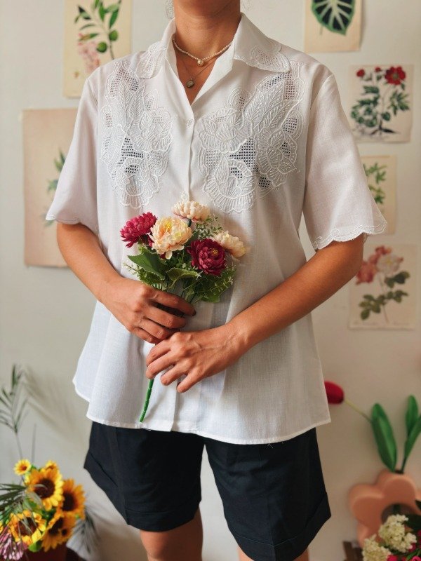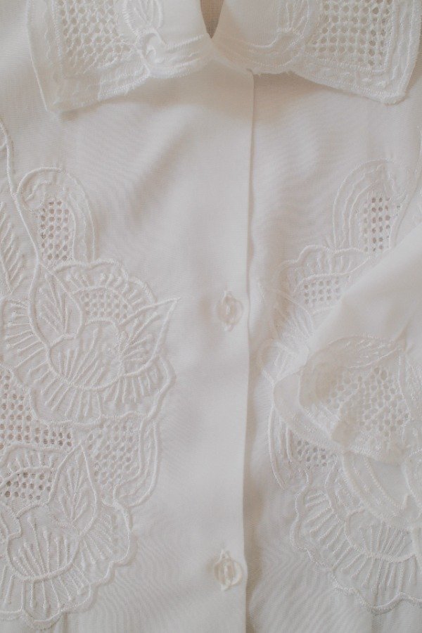 Camisa con calados y bordados en frente y cuello.