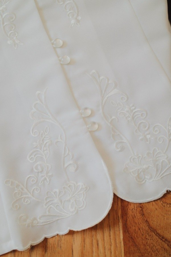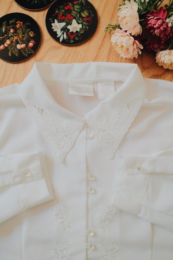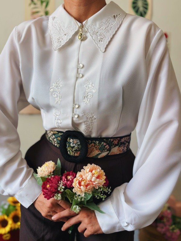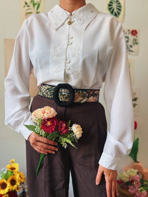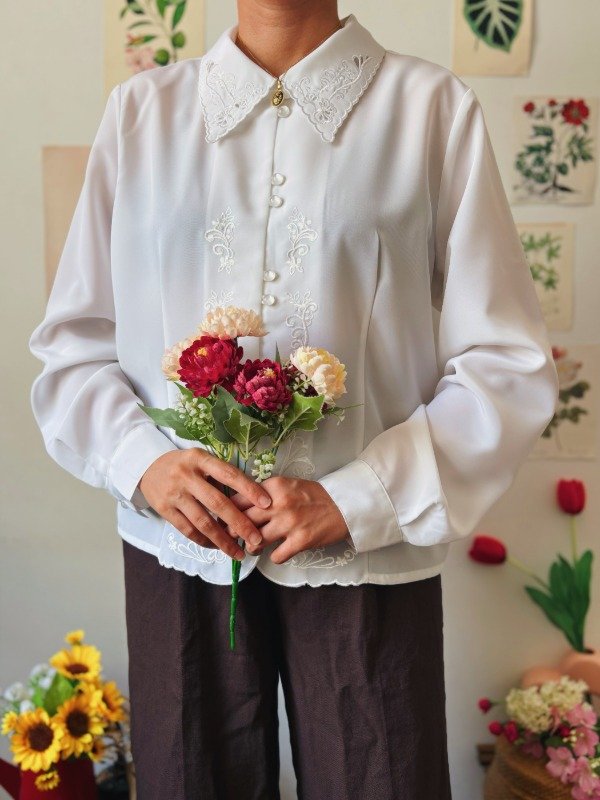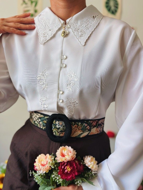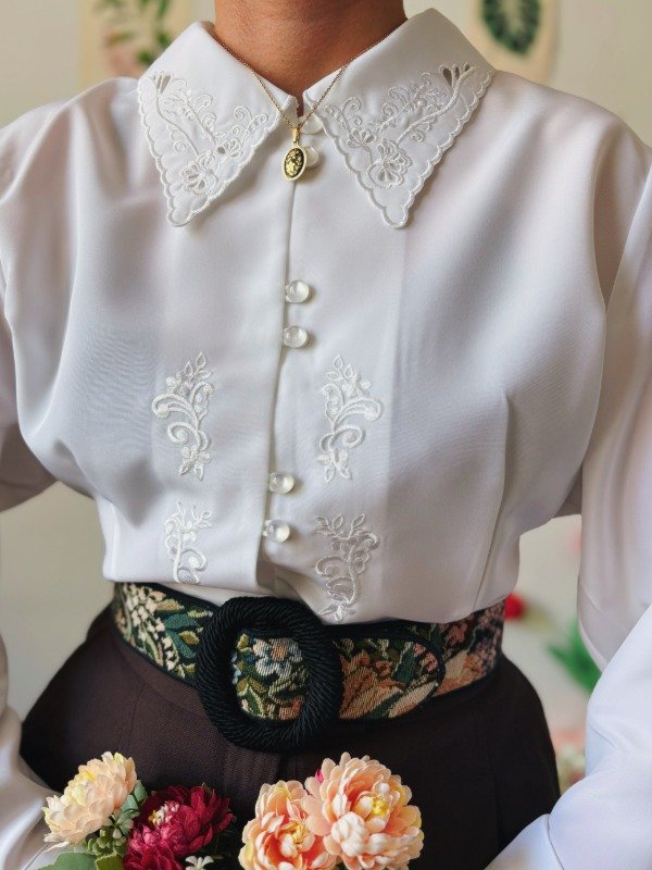 Camisa con bordados , calados y botones perlados.