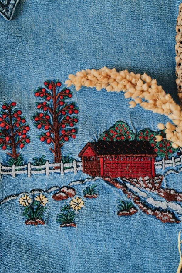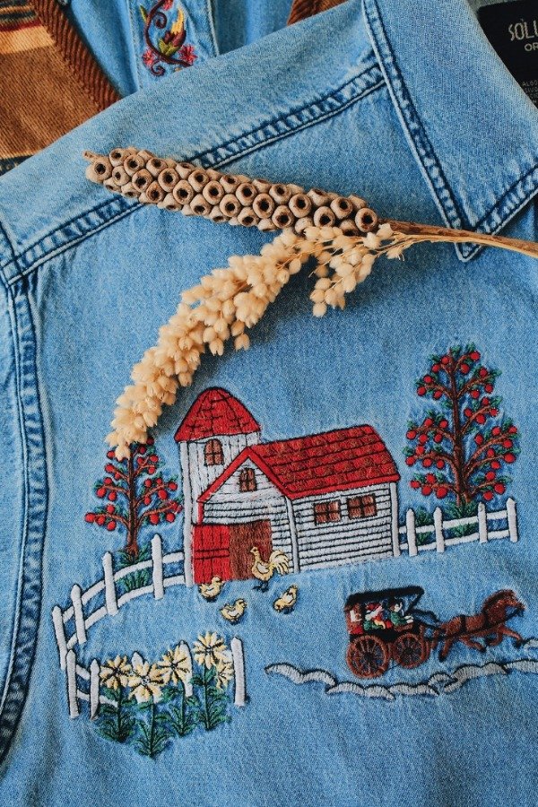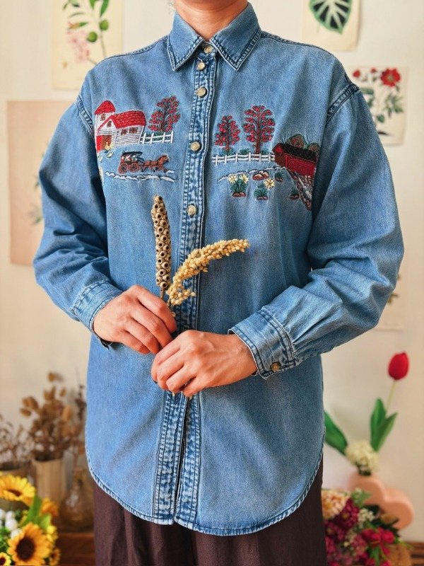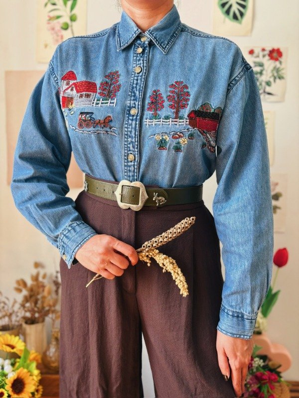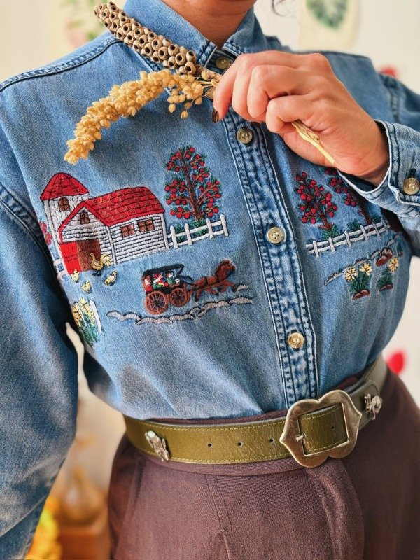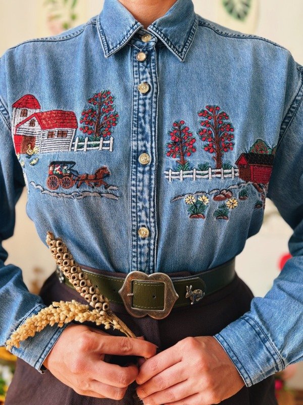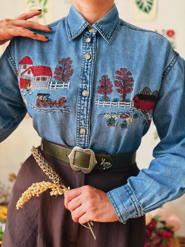 Camisa de jean con bordados en el frente y botones.