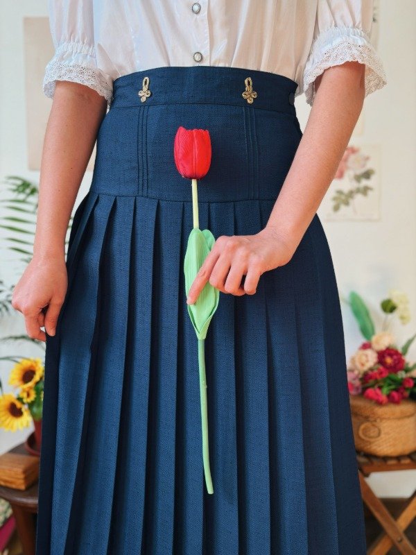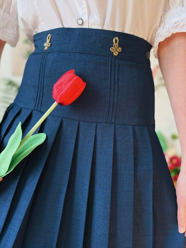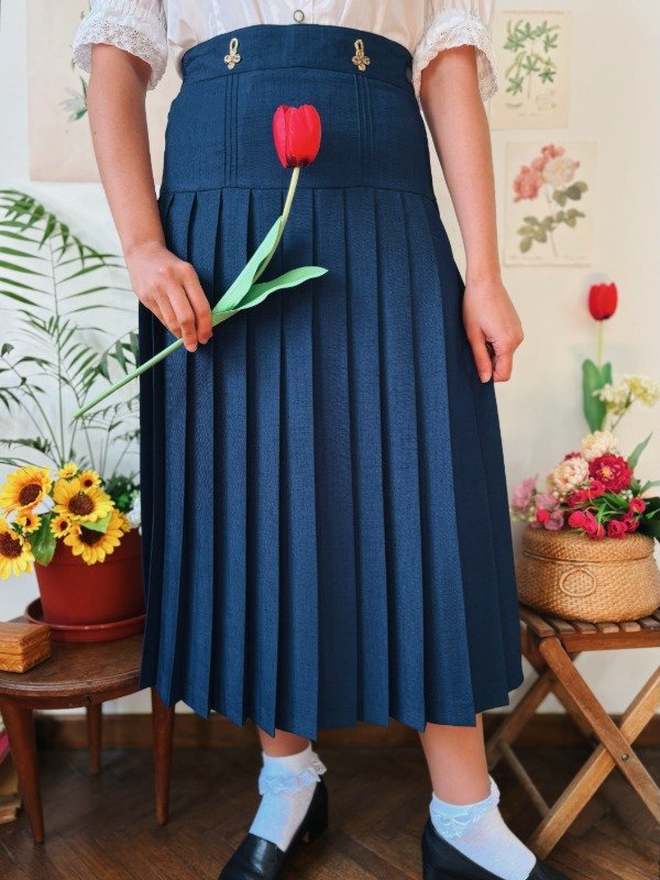 Falda El Corte Inglés hecha en España, con un botón, cierre, tablas y parte trasera de la cintura elastizada.